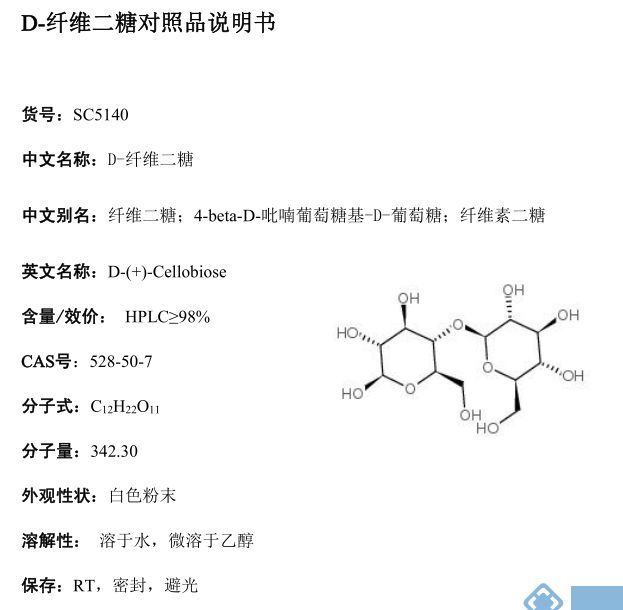 产品名称: D-(+)-Cellobiose;D-纤维二糖